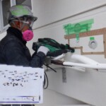 作業場所を隔離養生し、負圧除塵機で負圧状態にしてから作業します。次いで、セキュリティールーム、エアシャワーなど使用して作業従事者の安全と、外部へのばく露を防止しながら、石綿の除去、封じ込めや囲い込み作業を実施します。除去した石綿は、飛散性アスベスト特別管理産業排気物「廃石綿等」として処理します。